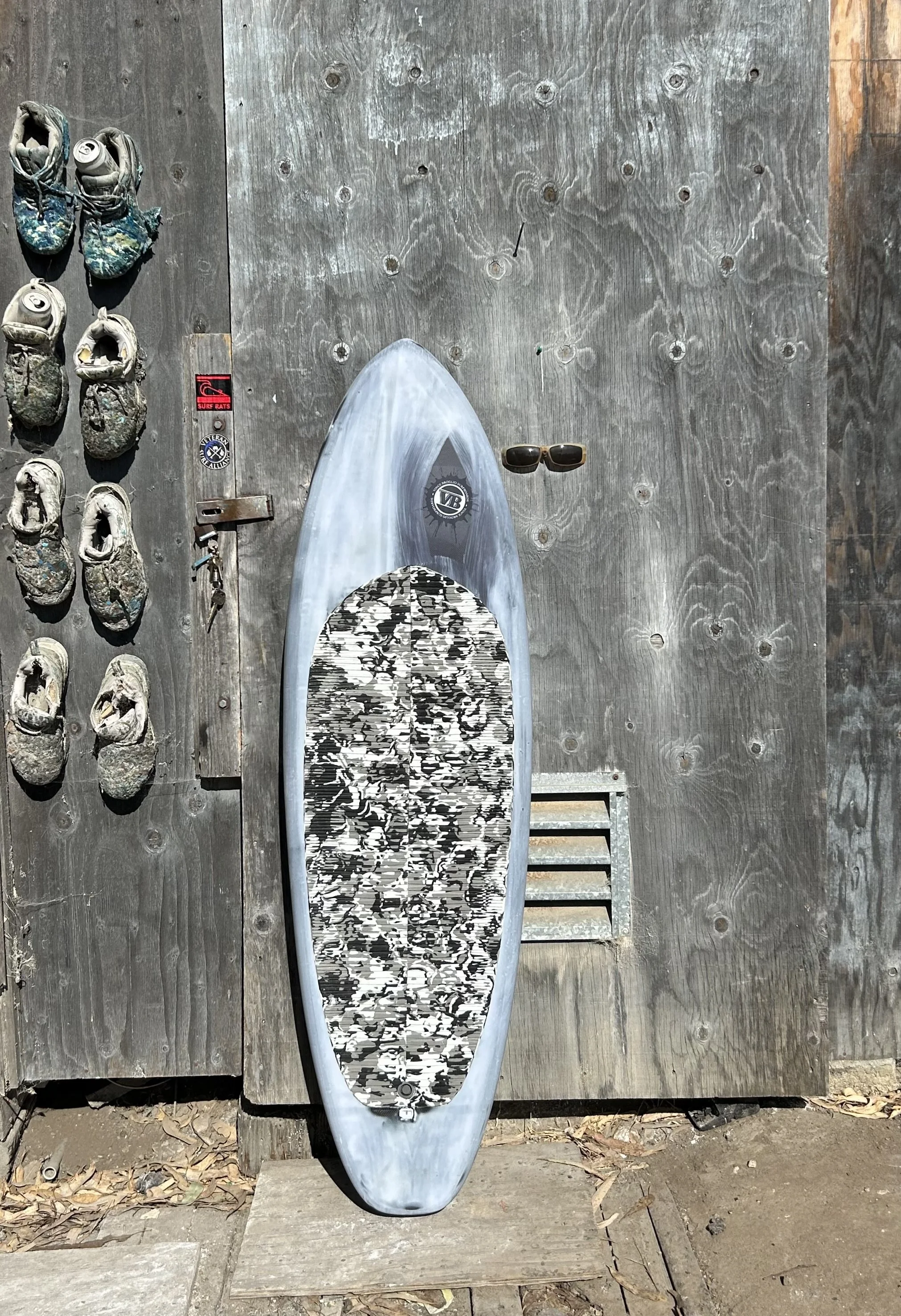 This board is designed for high performance! With a pulled in nose this board drives upwind extremely well and has less swing weight! My Wing Foil Boards are lightweight and desgsined to get up on foil quickly! With a even rocker flow, rolled nose to a ‘‘V’’ bottom for maximum release from the water. The deck line is designed like a skate board deck with rear and front kick for a locked in feel for better control! Makes these perfect for winging.